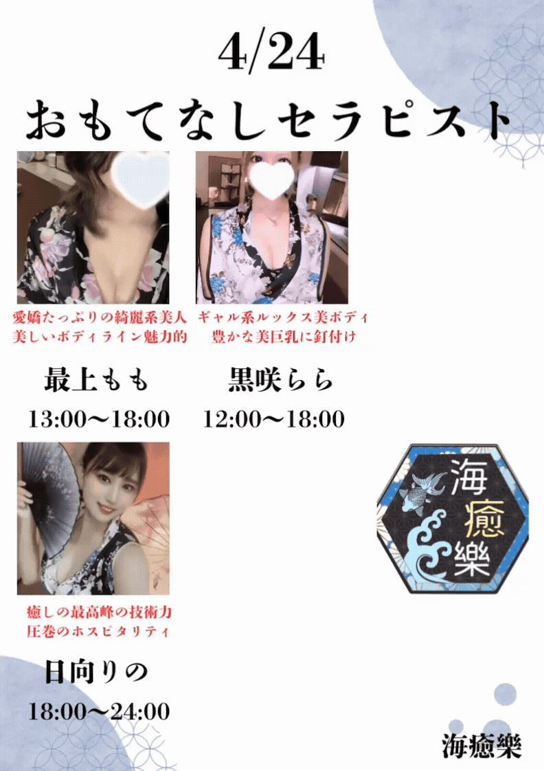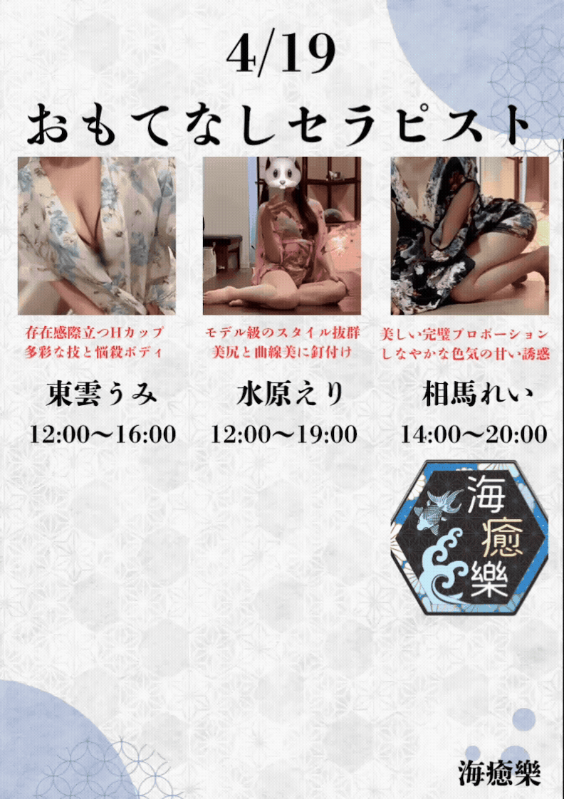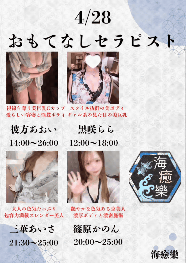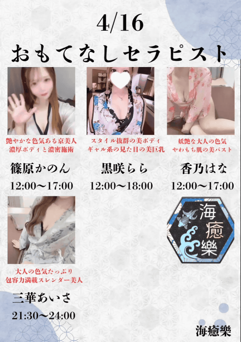 海癒樂が自信をもってお迎えするのは、厳選された美女たち。