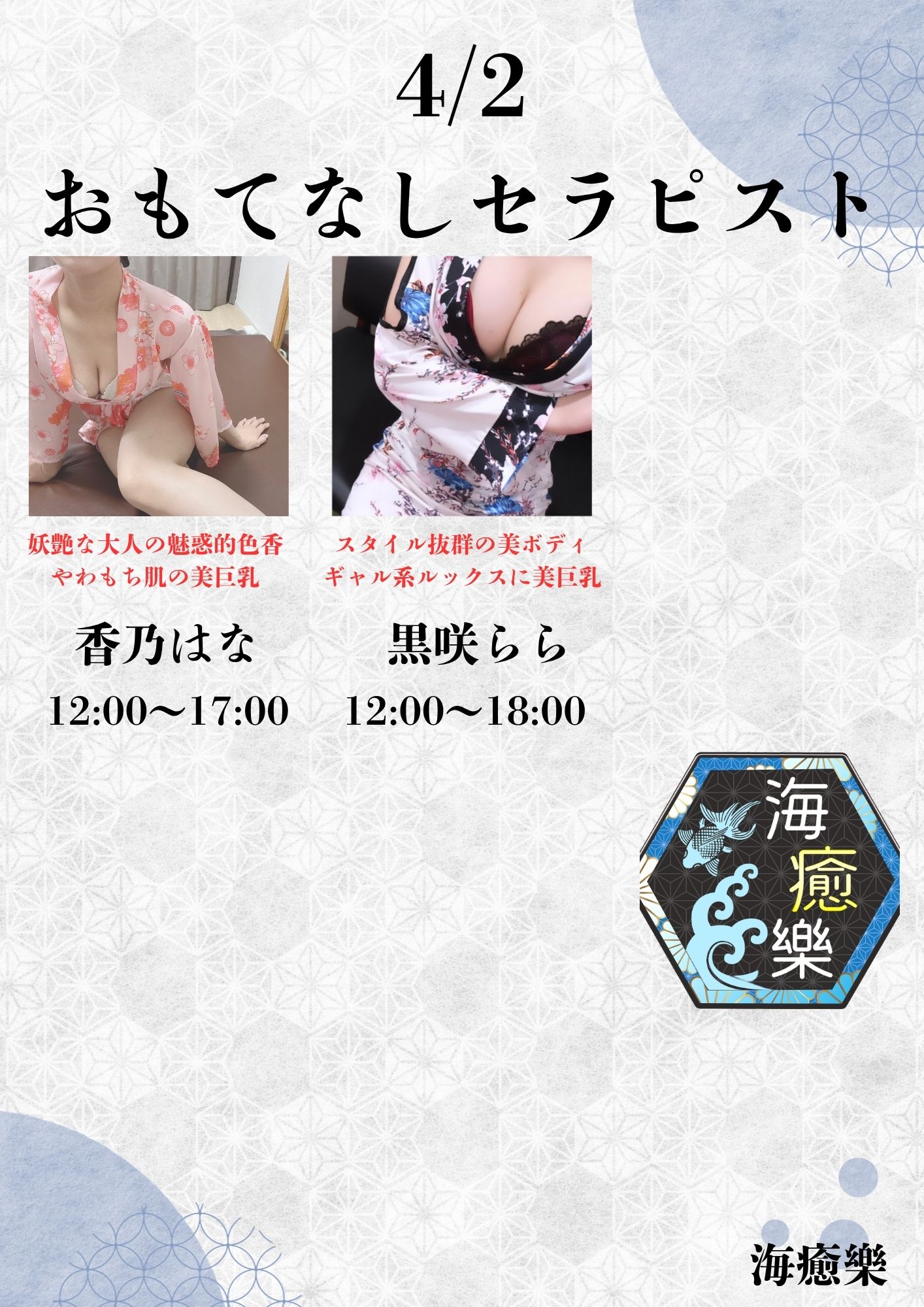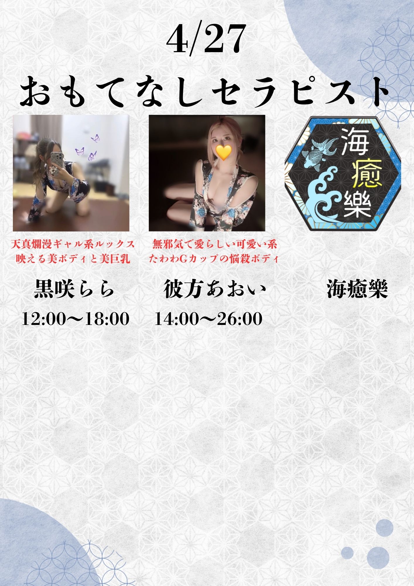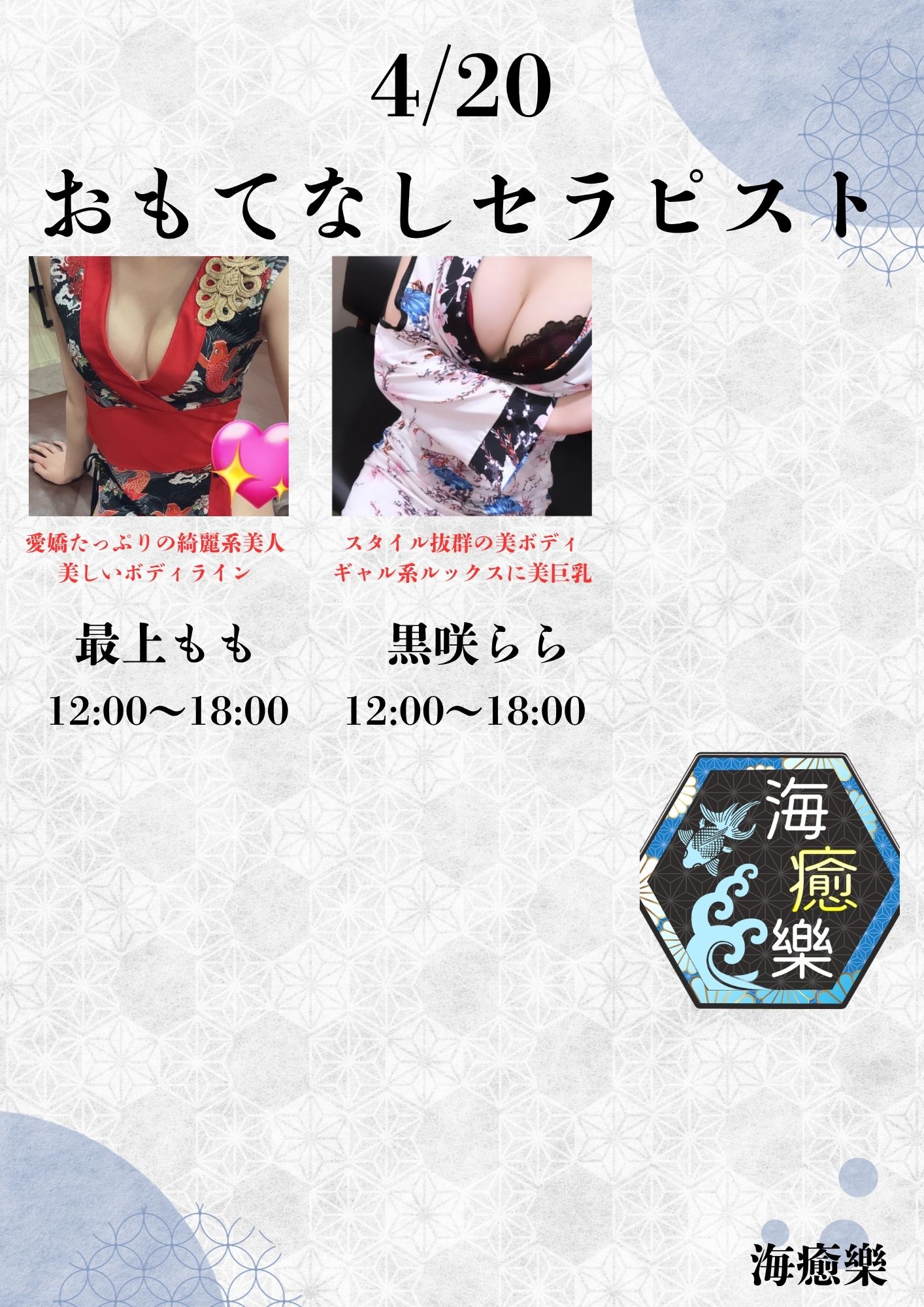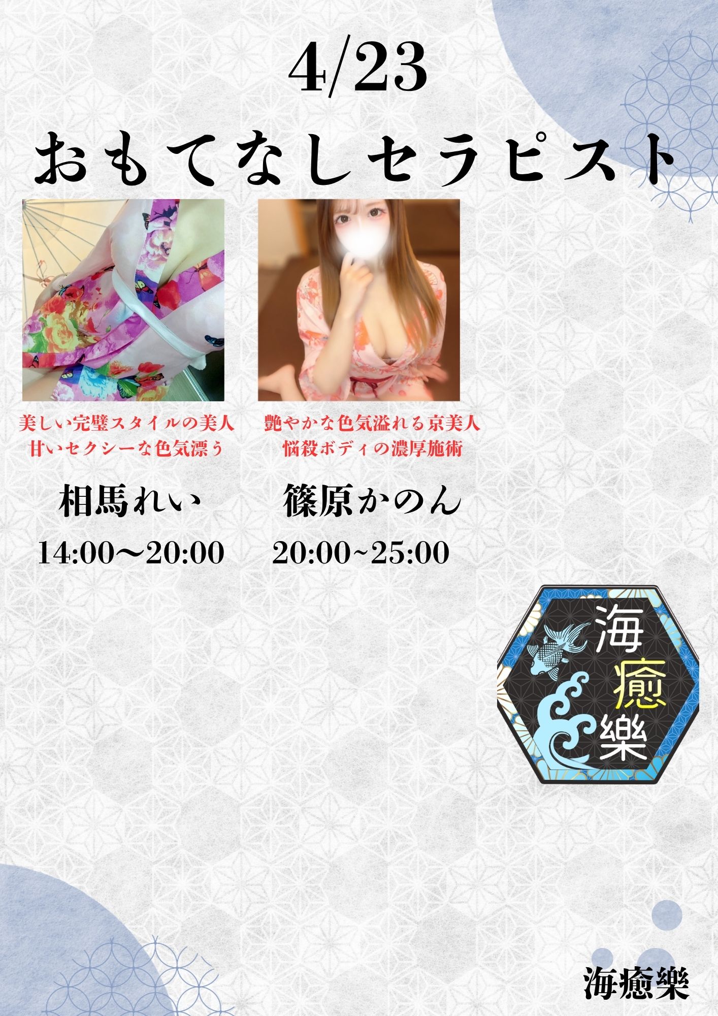海癒樂が自信をもってお迎えするのは、厳選された美女たち。