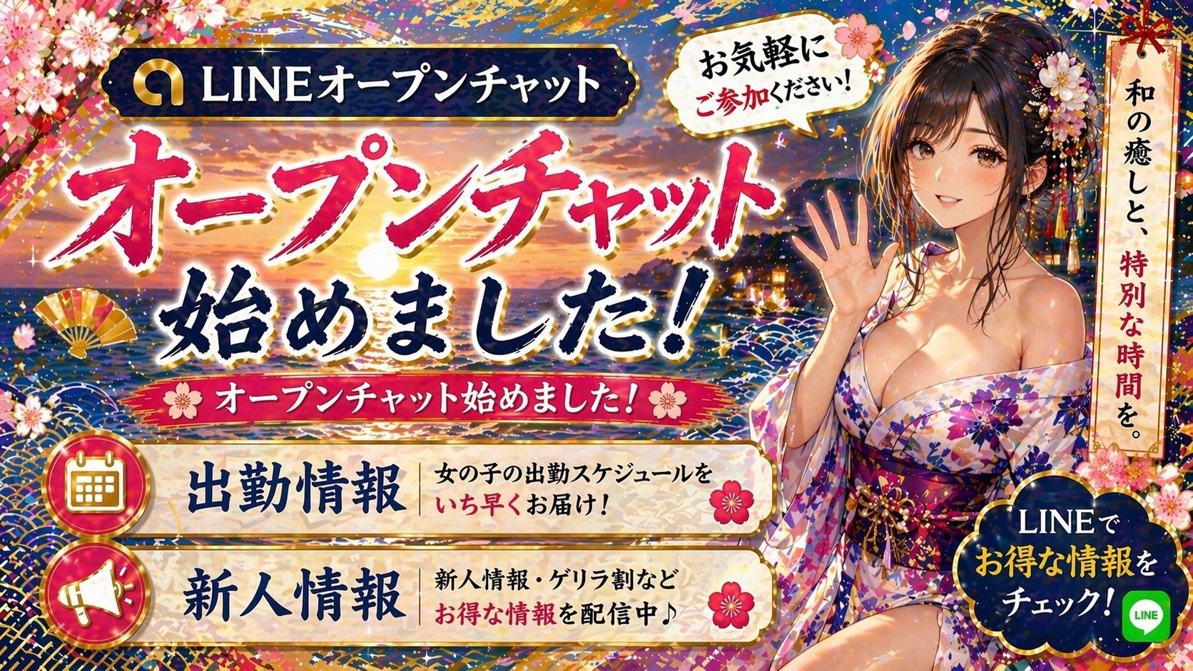 ここでしか味わえない、あたたかく、艶やかで、心を満たす特別な時間をお約束いたします。