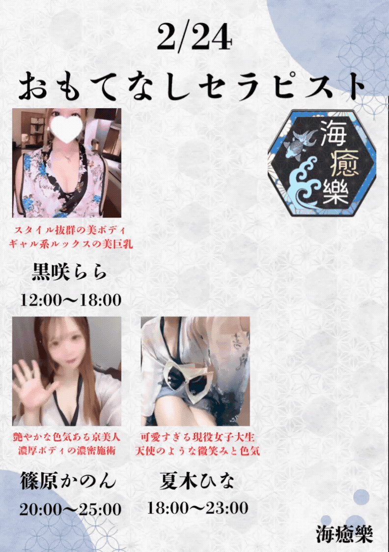2/24出勤セラピスト情報♡